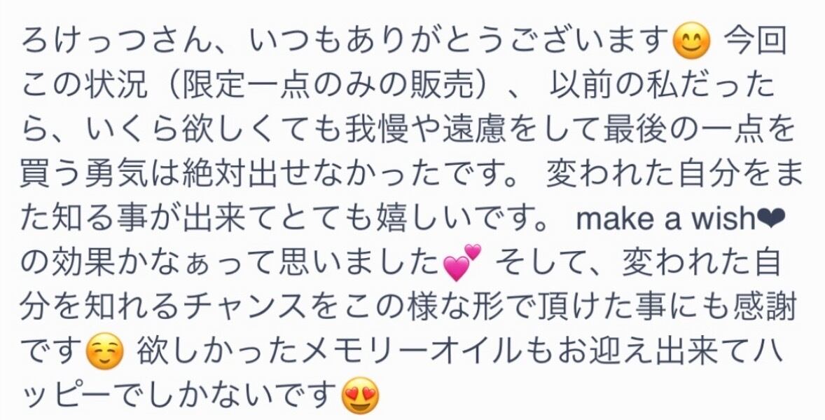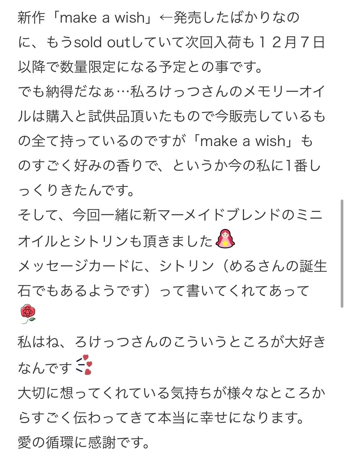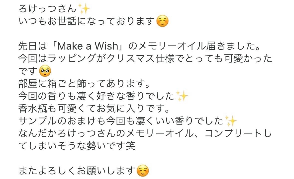 このMake a wish-願い事をする-という名前の付けられた特別なメモリーオイルブレンドには